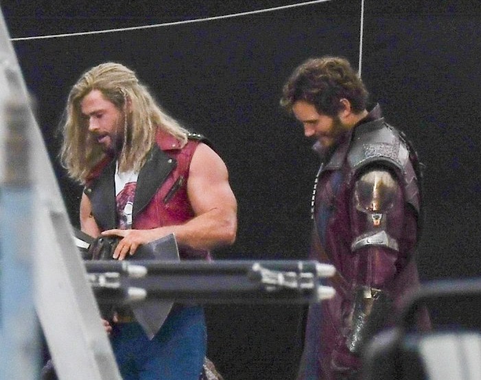 Primeiras foto do set de Thor Love and Thunder, Chris está vestindo uma nova roupa e Hemsworth está com um novo visual! pic.twitter.com/Ei3oS4KOUh