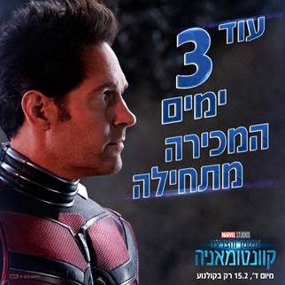 'אנטמן והצרעה: קוונטומאניה' ההרפתקה החדשה מבית מארוול אשר תפתח את השלב החמישי ביקום הקולנועי של מארוול ותכניס אתכם לעומק ממלכת הקוונטים התת-אטומית הסוחפת.